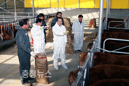 이석화 군수는 지난 13일 정산면 광생리 이종행씨 한우농장을 직접 방문해 수의사 등과 함께 백신접종 활동을 함께 펼쳤다.