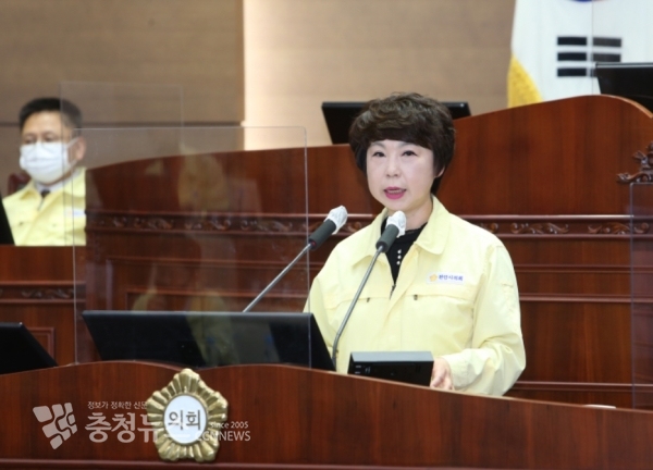 시정질문 하는 김길자 천안시의회 의원