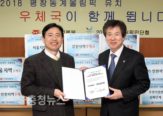 전국 3,700개 우체국에서 진행된 이번 서명운동은 평창동계올림픽 유치에 대한 국민의 관심도를 반영한 것으로 IOC실사단의 평가에 상당한 비중을 차지할 것으로 보여 유치에 큰 힘이 될 것으로 기대되고 있다.