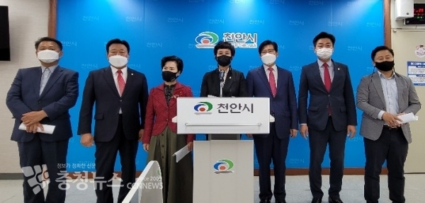 천안시의회 국민의힘 의원들은 4일 천안시청 브리핑 룸에서 기자회견을 갖고, 30일 241회 임시회 시정질문 도중 삭발을 강행한 이종담 의원에 대해 공식 사과할 것으로 강력 요구했다.