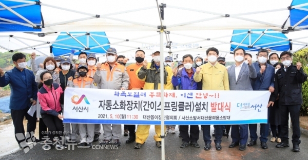 이날 발대식에는 맹정호 서산시장, 지역구 시의원, 대산읍이장단협의회 및 대산읍의용소방대 등 20여명이 참석한 가운데 사업취지 설명과 함께 자동소화장치 설치 시연 순으로 진행되었다.
