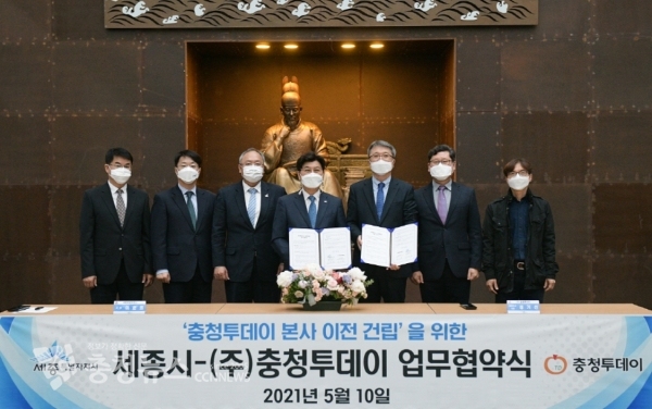세종특별자치시(시장 이춘희)와 충청투데이(대표이사 사장 성기선)는 10일 시청 4층에서 충청투데이 세종시 본사 이전을 위한 업무협약(MOU)을 체결했다.
