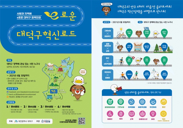 대전 대덕구(구청장 박정현)는 오는 6월 30일까지 참여형 정책연수프로그램인 ‘e로운 대덕구혁신로드’를 추진한다.