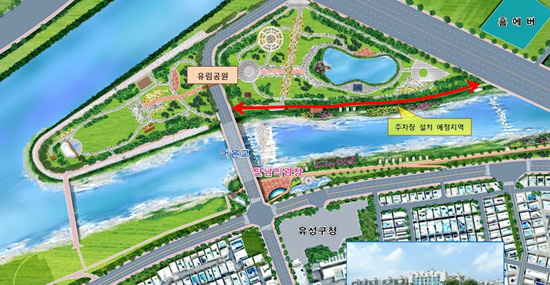대전시 유성구(구청장 허태정)는 구청앞 어은교 일원에 조성된 유림공원을 찾는 방문객들의 주차난 해소를 위해 유성천 제방도로에 친환경 녹색주차장 58면을 조성키로 했다고 18일 밝혔다.