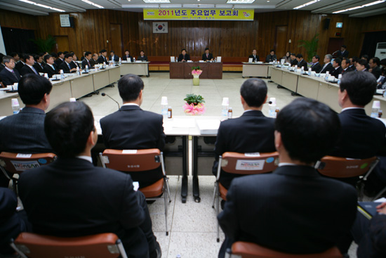 이날 2011년도 주요업무보고회는 황명선시장과 국․소장, 업무보고 실과장 31명, 6급이상 130여명과 국민대 안성률교수, 건양대 권경주, 이진 교수 등 외부자문위원 등 총 170여명이 시청 회의실을 가득 메운채 오전9시부터 오후 6시반까지 각 부서의 업무에 대해 심도있는 토론이 진행됐다.