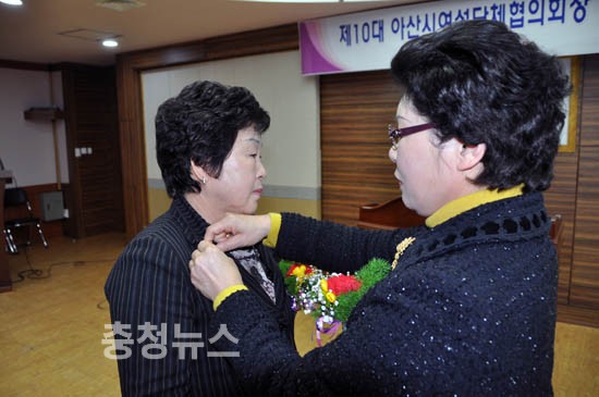 충청남도 아산시(시장 복기왕)여성단체협의회 제9대회장(한갑열) 제10대회장 (김성순)이․취임식이 지난 18일 시청 상황실에서 개최됐다.