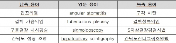북측용어는「림상의전」(2016), 「영조일 의학대사전」(2020) 및 최신 의학 논문 등을 기준으로 검토하였다.