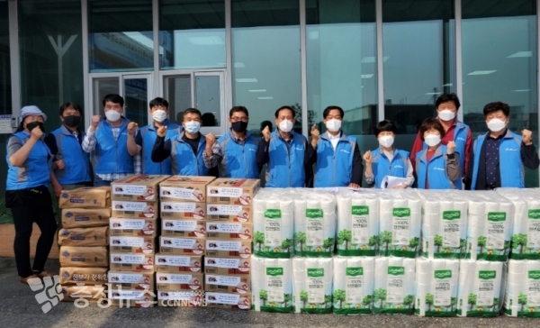 저소득 60여 가구에 라면·화장지 등 300만 원 상당 생필품 기탁
