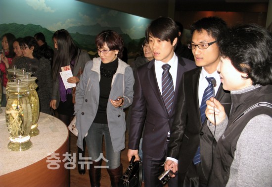 ▲ 중국여행사 관계자들이 금산인삼관을 방문, 관광해설사의 설명을 듣고 있다.