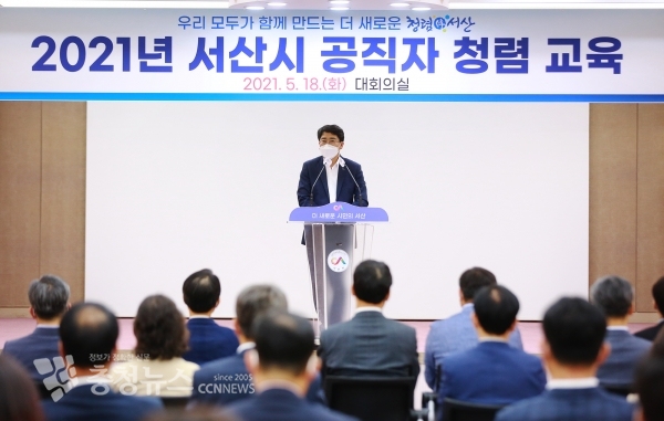 서산시는 18일 대회의실에서 5급 이상 공직자를 대상으로 공정하고 투명한 공직사회 조성을 위한 청렴 교육을 실시했다.
