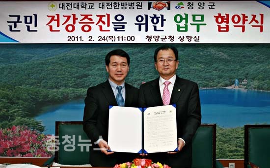 충청남도 청양군(군수 이석화)은 지난 24일 청양군청회의실에서 대전대학교 대전한방병원(원장 손창규)와 업무협약을 체결했다.