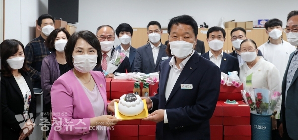 21일 서산시의회(의장 이연희)는 부부의 날을 기념해 의원들과 사무국 직원들에게 사랑의 메시지를 담은 케이크를 선물했다.