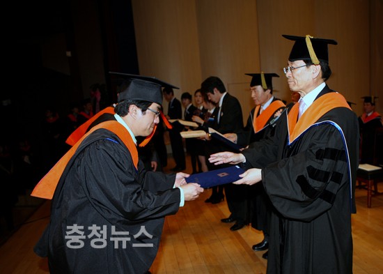 ▲ 이원묵 총장이 직접 학생들에게 학위수여를 하고있다