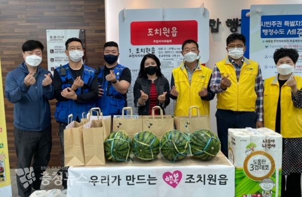 한편, 세종맘카페(회장 정연숙) 내 조직된 ‘희망나눔봉사단’은 소년소녀가장을 위한 생필품과 상비약 기부, 연서면 화재피해 지원, 연말 취약계층에 김장김치 전달 등 정기적인 나눔과 봉사활동을 해오고 있다.