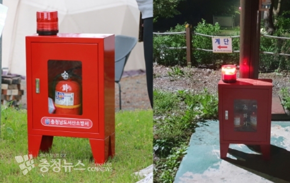 서산소방서는 안전한 야영 환경 조성을 위해 관내 야영장을 대상으로 소방안전용품을 담은 ‘빛나는 소화기함’을 설치하는 등 야영장 안전관리 강화에 나서고 있다.