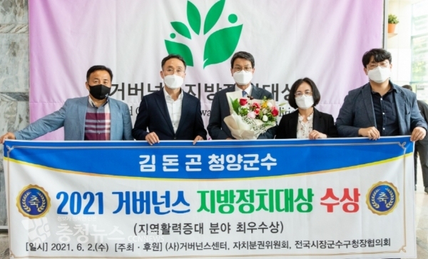 김돈곤 충남 청양군수가 2일 2021 거버넌스 지방정치대상 공모대회에서 영예의 최우수상을 받았다.
