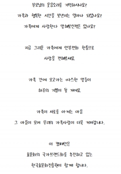 한국효문화진흥원(원장 문용훈)은 효문화를 확산하고 가족 간의 소통을 독려하기 위하여 가족사랑 캠페인을 벌인다.