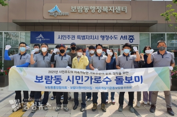 세종특별자치시 보람동(동장 강민규)이 7일 유진기업㈜세종 직원, 보람동 관계자 등 10여 명이 참여한 가운데 보람동 근린공원·상가 주변에서 ‘시민가로수 돌보미 활동’을 진행했다.
