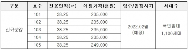 입찰 6월 21일∼22일, 개찰 및 낙찰자 발표 22일, 계약은 6월 29일∼30일 예정으로 LH청약센터(http://apply.lh.or.kr)을 통한 인터넷 전자입찰로만 참여가능하며, 신청자격에 별도의 제한이 없고 1인 2호 이상 신청도 가능하다.