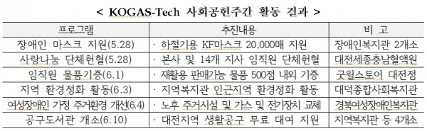 < KOGAS-Tech 사회공헌주간 활동 결과 >