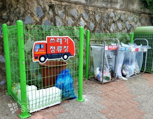 쓰레기 정류장은 기존 배출장소와 도로변을 확실히 구분짓고 쓰레기가 바람에 날리는 것을 방지하기 위해 펜스를 둘렀으며, 쓰레기 정류장 표지판을 달아 배출장소 유지 및 관리에 용이하게 하였다.