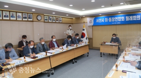 서산시청 2층 상황실에서 주택용 소방시설 설치 촉진을 위해 실시한 이‧통장 간담회 실시 모습
