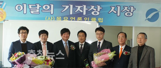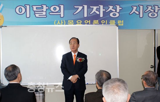 목요언론인클럽(회장 표정렬)은 10일 본 클럽 사무실에서 40여명의 원로 언론인과 심대평 국민중심연합 대표가 자리한 가운데 이달의 기자상 시상식을 가졌다.
