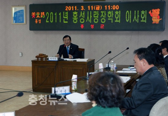 재단법인 홍성사랑장학회는 지난 11일 홍성군청 회의실에서 이사회를 개최하고, 2010년 장학회 결산 심의와 2011년 장학회 예산안과 2011년 장학생 선발요강을 심의했다.