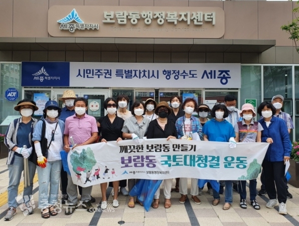 세종특별자치시 보람동 통장협의회(회장 김재욱)가 22일 쓰레기 상습투기 지역인 보람동 상가 주변을 중심으로 깨끗한 거리 만들기를 위한 국토대청결 운동을 전개했다.
