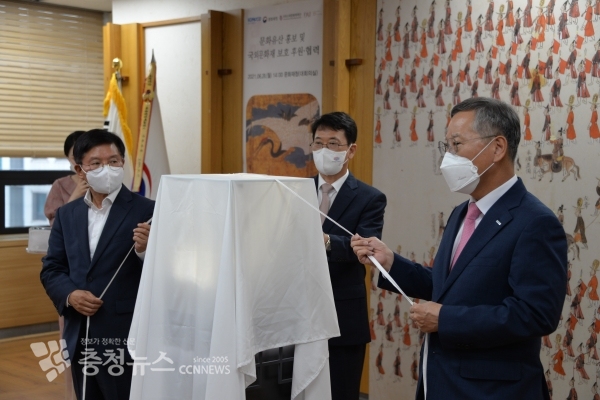 좌로부터 김현모 문화재 청장, 최응천 이사장, 반장식 사장