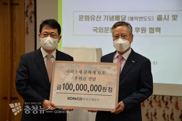 반장식 한국조페공사 사장(우측) 1억원 국외소재 문화재보호 후원금 전달