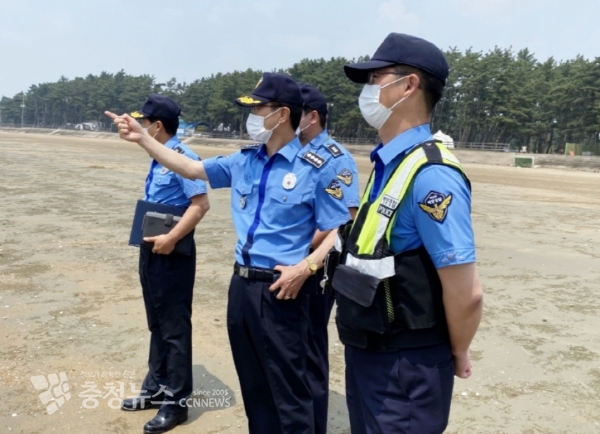 본격적인 여름 물놀이 성수기를 앞두고 지난 28일 태안해양경찰서 성창현 서장은 관내 갯벌, 갯바위, 항·포구 등 인명사고 발생 우려가 높은 연안해역 위험구역과 해수욕장을 직접 돌아보며 인명구조장비함, 위험표지·알림판, 유영구역 부표 등 각종 안전시설물 설치와 관리상태를 중점 점검했다.