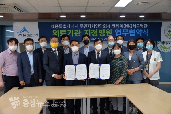 세종시 주민자치연합회(회장 안주성)-엔케이(NK)세종병원(이사장 김영제)이 29일 협력을 통한 상호 발전과 편의를 도모하기 위해 업무협약을 체결했다.