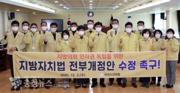 아산시의회는 지난해 12월 지방의회 인사권 독립 등 지방자치법 전부개정 수정 촉구 건의문 채택, 국가 균형발전 실현을 위한 행정수도 완성 촉구를 위한 건의문 채택, 주민의 알권리 충족과 재난상황의 신속한 전파를 위한 KBS 충남방송총국 설립 촉구 1인 시위, 영인면 폐기물 매립지 설치계획 반대 결의, 일본 정부의 후쿠시마 원전 방사능 오염수 해양 방류 결정 철회 촉구 성명 발표, 삼성 이재용 부회장 특별사면 청원 성명 발표 등 각종 지역 현안문제에 적극적으로 대처하여 대의기관으로서 시민의 대변자 역할에 충실히 수행하고 있다.