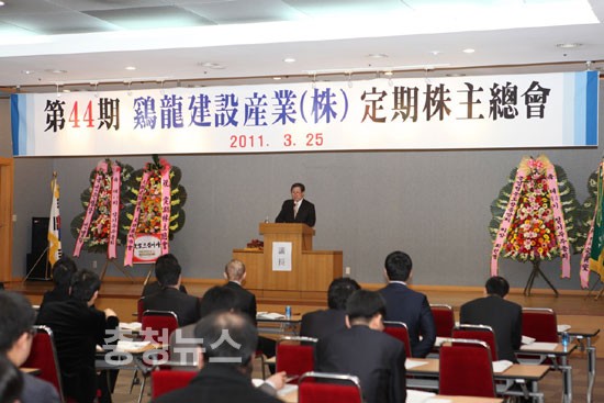올해로 창립 41주년을 맞는 계룡건설은 25일 오전 월평동 본사 12층 강당에서 제44기 정기주주총회를 개최했다.