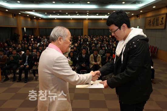 이인구 계룡장학재단 이사장(계룡건설 명예회장)은 지난 26일 계룡건설 강당에서 155명의 고등·대학생에게 2011년도 1/4분기 장학금 1억4천여만원을 지급했다.