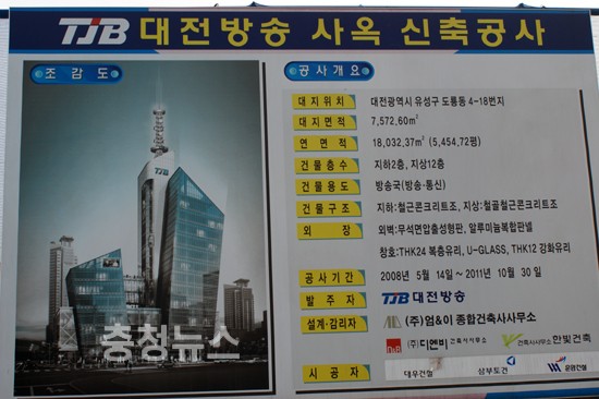 운암건설을 주관사로 대우건설과 삼부토건이 컨소시엄을 구성해 52%정도 공정률을 보이고 있는 유성구 도룡동 TJB사옥 건설이 지하 공사현장에 대량의 침수 피해로 설계변경이 요구돼 장기화 될 전망이다.