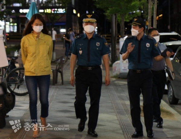 윤명성 세종경찰청장이 17일 밤 9시 시경 세종시 나성동 먹자골목 거리를 찾아 코로나19 방역수칙 준수 실태를 점검했다.