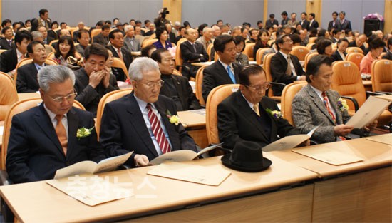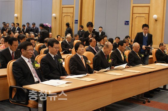 ▲ 이원묵 한밭대총장, 한만희 건설청장, 신수용 대전일보 사장, 홍문표 전 대전시교육감 등 많은 내빈이 참석했다.