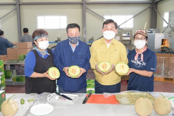 황선봉 군수는 27일 예산중앙농협 공선장을 방문해 관내에서 생산된 ‘백송메론’의 품질을 직접 살폈다.