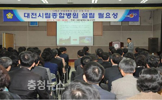 대전광역시 동구의회(의장 황인호)는 1일 구청 대회의실에서 의원 및 구 간부공무원과 주민이 참석한 가운데 동구에 대전시립종합병원 설립 필요성에 대해 나백주 건양대학교 교수를 초청해 특강을 개최했다.