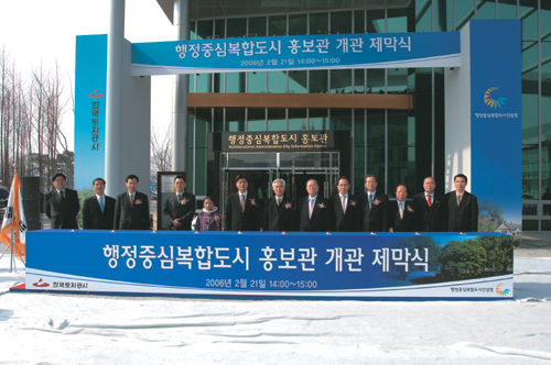 충남 연기 공주에 건설되는 행정중심복합도시를 미리볼 수 있는 행정도시 홍보관이 2월 21일 연기군 금남면 대평리에 문을 열었다.
