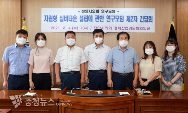 천안시의회(의장 황천순) '자립형 실버타운 설립 연구모임 이교희 (대표의원), 정도희, 김각현, 인치견, 권오중, 김철환, 이은상 의원은 4일 시의회 경제산업위원회 회의실에서 제2차 간담회를 가졌다.