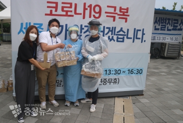 세종특별자치시 청소년들이 세종시 코로나19선별진료소에 정성껏 만든 머핀을 전달하면서 의료진들을 향한 응원의 목소리를 보내고 있다.
