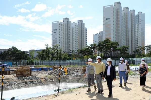 19일 철근 수급 지연으로 인해 공사가 지연되고 있는 학교 현장 점검