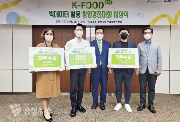 한국농수산식품유통공사(사장 김춘진)는 19일 서울 aT센터에서 ‘K-FOOD 빅데이터 활용 창업경진대회’ 본선 결과 최종 선정된 우수 아이디어 3편에 대한 시상식을 개최했다.