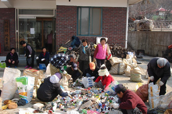 ▲ 서천군 마산면 주민들이 폐자원을 모아 정리하고 있다.