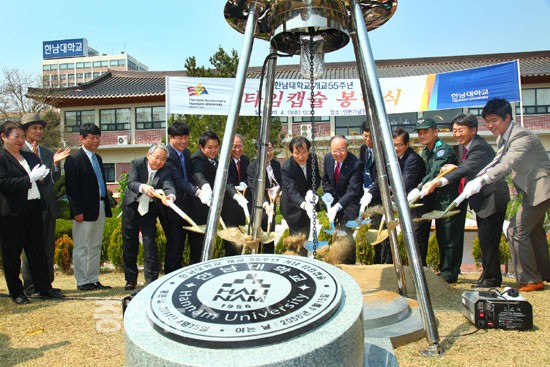 한남대학교가 15일 개교 55주년을 앞두고 다채로운 기념행사를 개최하고 있는 가운데, 13일 오전 11시 교내 국제회의실에서 55주년 기념 엠블렘 공포식을 가졌다.