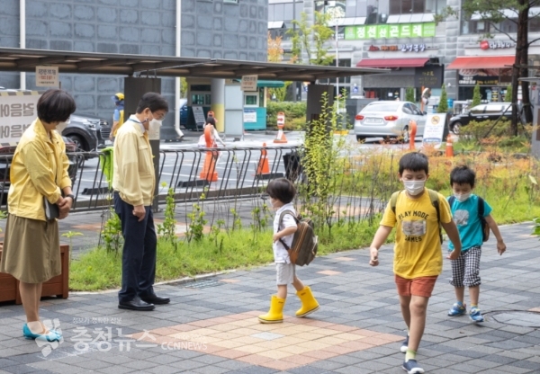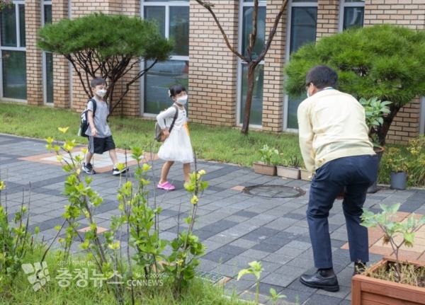 최교진 교육감은 원생들의 등원을 지도하고 발열체크 과정을 직접 참관하면서 아이들과 반가운 인사를 나눴다.
