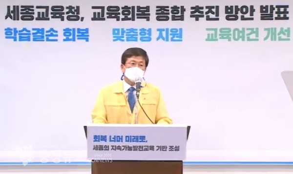 그러면서 "정부와 긴밀한 협력을 이끄는 차원에서 교육부 방안을 큰 틀로, 세종의 모든 학생의 교육 회복이 되도록 지역 특성과 학교 현장에 맞게 신속하고 집중 지원할 수 있도록 하겠다"고 강조했다.